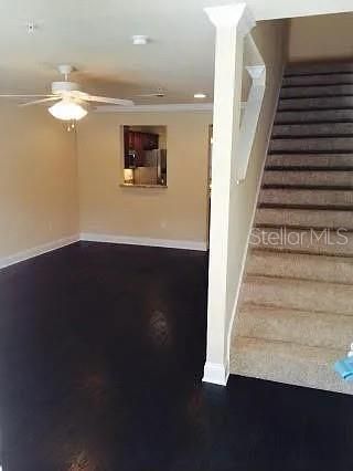 Open-concept 2-bedroom, 2.5-bathroom townhouse featuring quality finishes throughout. The main level offers seamless flow between the living, dining, and kitchen areas. Kitchen includes wood cabinetry, granite countertops, stainless steel appliances, and pantry storage. Ceramic tile and hardwood-style flooring on main level; carpet in bedrooms. Vaulted ceilings enhance the spacious feel.Upstairs: Two bedrooms with ample closet space. Primary suite includes en-suite bathroom with soaking tub and separate shower. Interior laundry room with hookups. Additional features include covered front porch and screened-in back porch.Key Features:Central air conditioning and heatCeiling fansWalk-in closets and linen closetDishwasher, disposal, microwave, refrigerator, stove/ovenConveniently located minutes from University of Florida, Shands Hospital, and Celebration Pointe with easy access to shopping, dining, and entertainment.